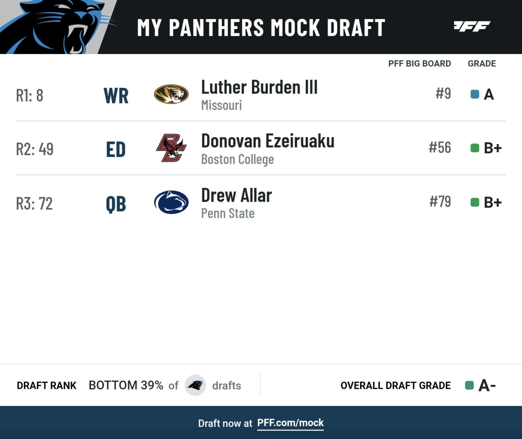 • Draft and trade for yourself: Try PFF's Mock Draft Simulator — trade picks and players and mock for your favorite NFL team.