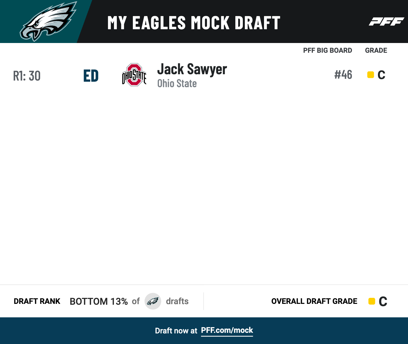30. Philadelphia Eagles: EDGE Jack Sawyer or WR Elic Ayomanor