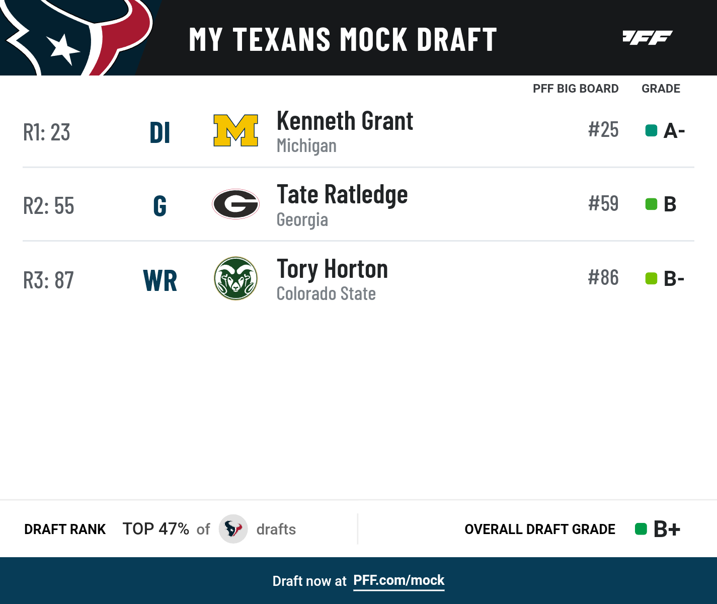 • Kenneth Grant to boost defensive interior: This Michigan standout would join a talented defensive line in Houston.