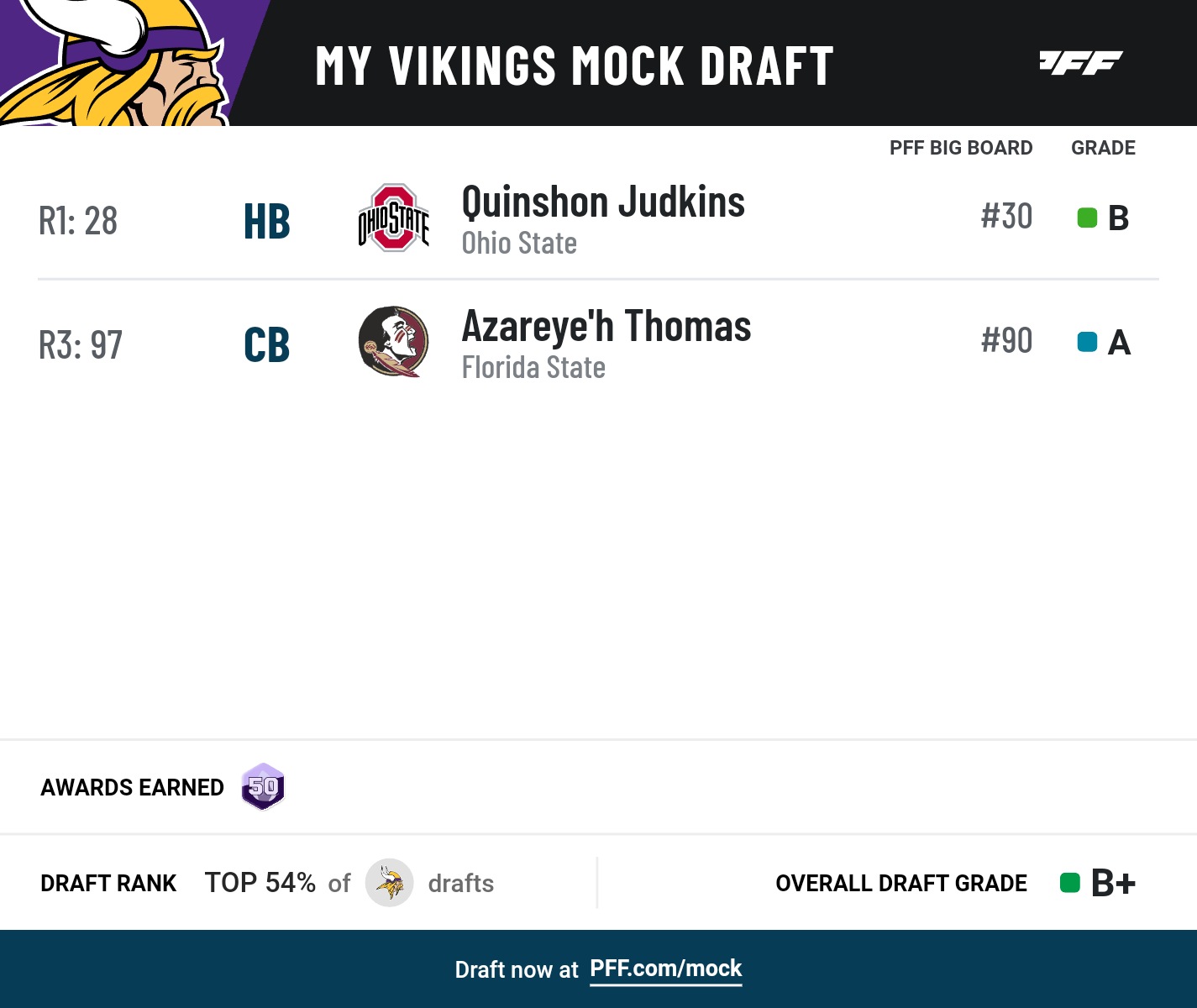 Click the links below to see your team's mock draft.