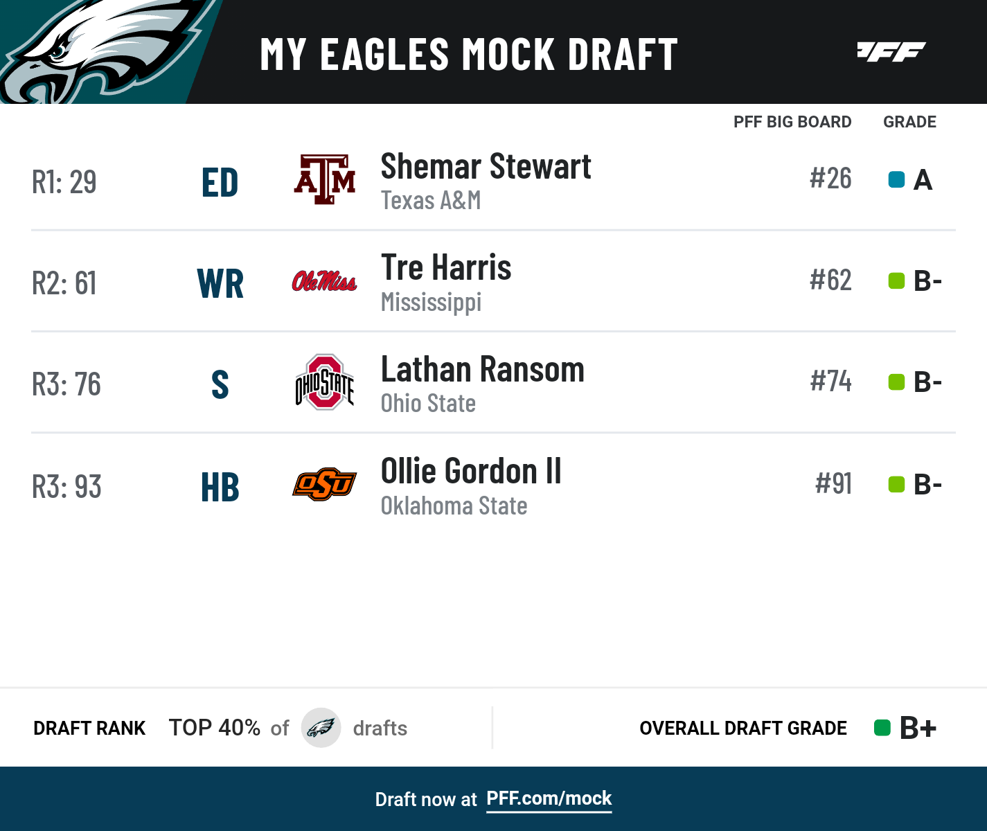 • Draft and trade for yourself: Try PFF's Mock Draft Simulator — trade picks and players and mock for your favorite NFL team.