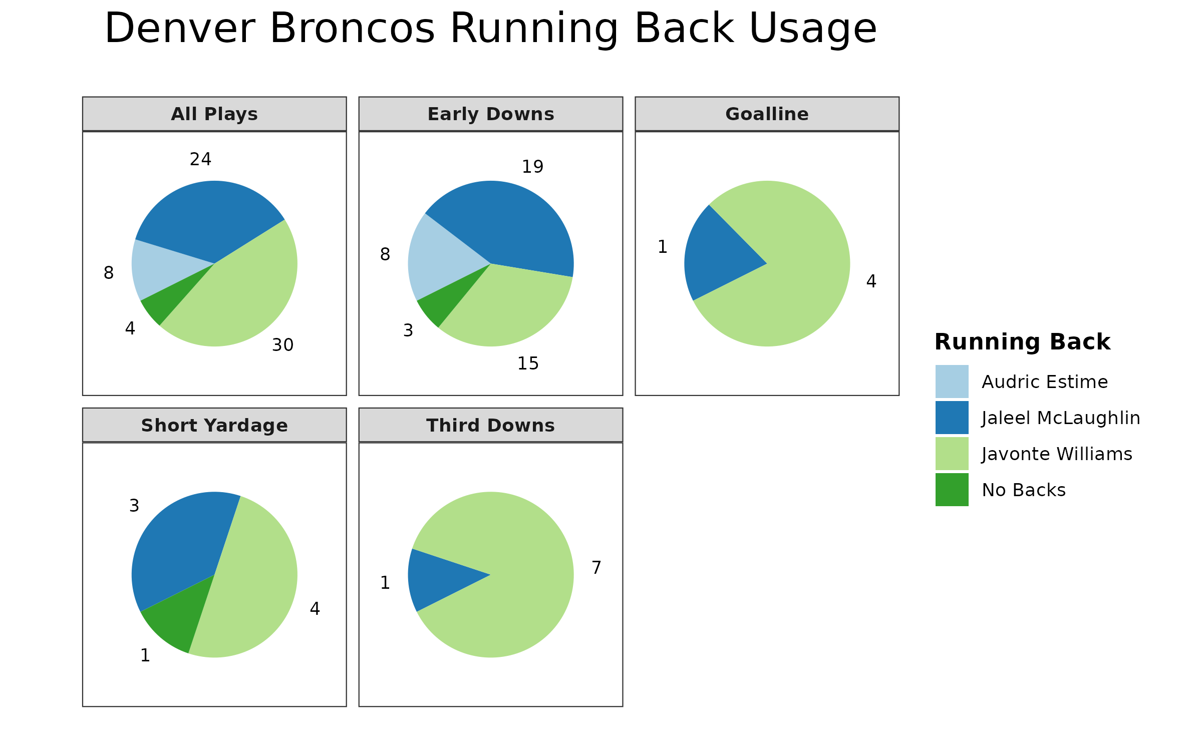 • Backup running backs lead the backfield: Jerome Ford and Jaleel McLaughlin led their respective teams in rushing yards — rather than Nick Chubb and Javonte Williams.