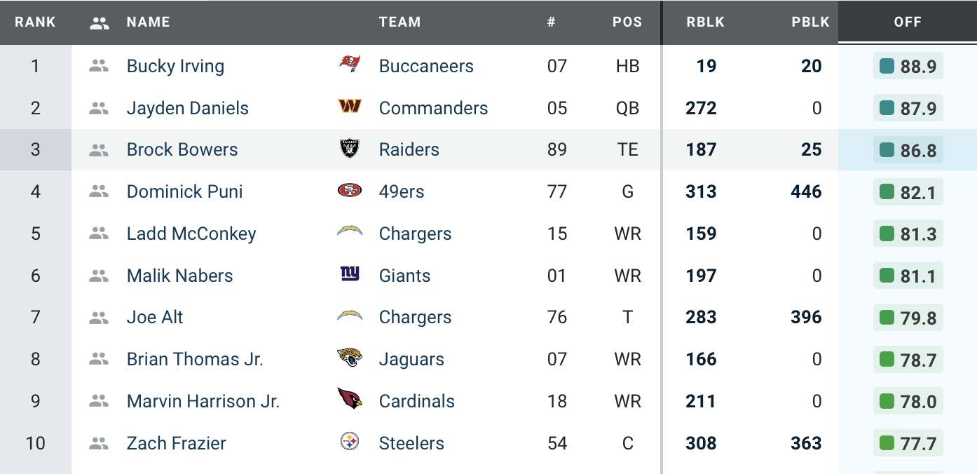 Highest-Graded Offensive Rookies
