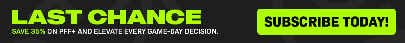 • Unlock your edge with a PFF+ subscription: Get full access to all our in-season fantasy tools, including weekly rankings, WR/CB matchup charts, weekly projections, the Start-Sit Optimizer and more. Sign up now!