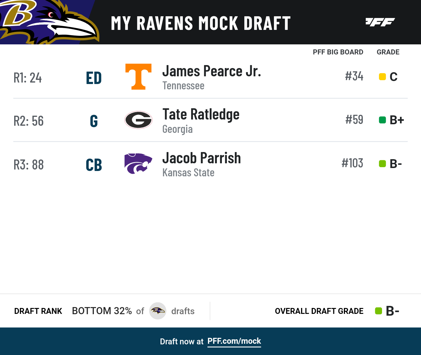 • Draft and trade for yourself: Try PFF's Mock Draft Simulator — trade picks and players and mock for your favorite NFL team.