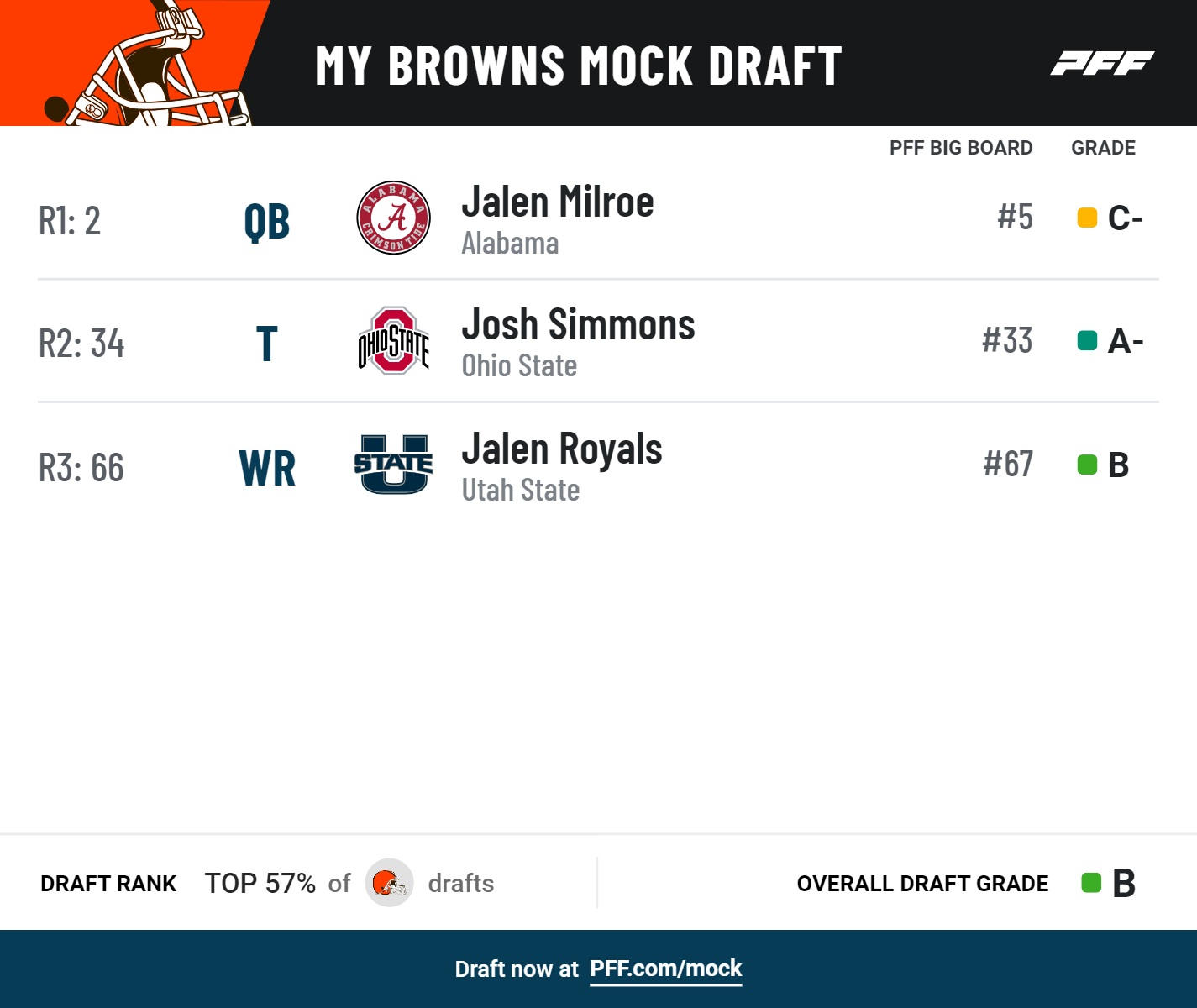 • Draft and trade for yourself: Try PFF's Mock Draft Simulator — trade picks and players and mock for your favorite NFL team.