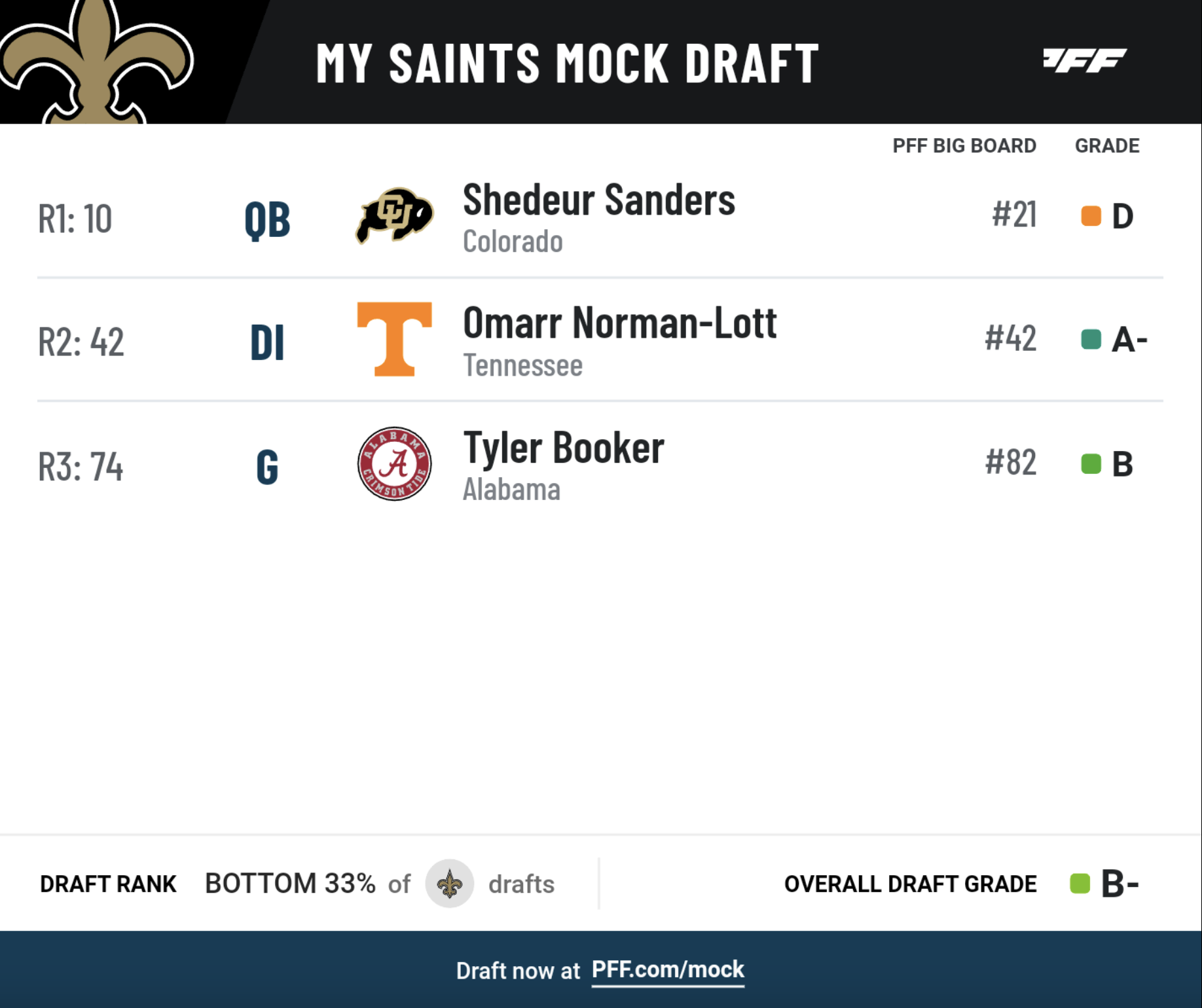 • Draft and trade for yourself: Try PFF's Mock Draft Simulator — trade picks and players and mock for your favorite NFL team.